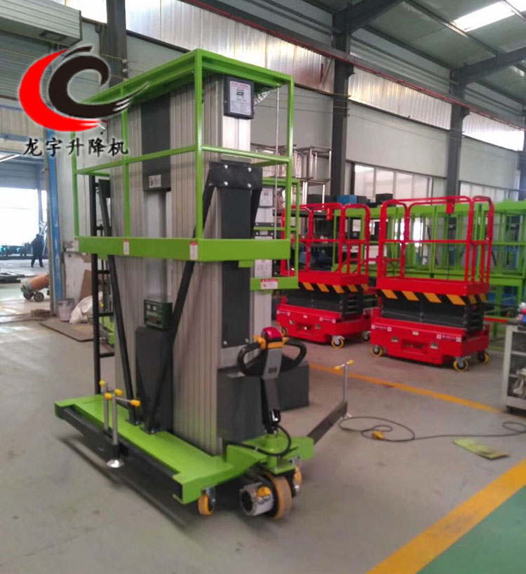鋁合金升降平臺(tái)產(chǎn)品為室內(nèi)型高空作業(yè)平臺(tái),廣泛用于星級(jí)酒店,大型超市等各行業(yè)大廳、廠房?jī)?nèi)的高空作業(yè), 具有升降平衡,操作方便,能進(jìn)入一般門廳,可隨意進(jìn)出電梯且耗電少、無(wú)污染、工作時(shí)不傷 地面,可用于貼墻工作及探出作業(yè),工作無(wú)死角。單立柱式鋁合金電動(dòng)升降機(jī)配上龍門跨架附件,非常適合于影劇院、會(huì)堂、教堂等的維修工作。配有萬(wàn)向腳輪,機(jī)動(dòng)靈活。鋁合金升降平臺(tái)屬高空作業(yè)設(shè)備,必須嚴(yán)格規(guī)范操作,嚴(yán)禁超載作業(yè),定期檢查電路、油路,確保升降臺(tái)安全運(yùn)行。升降平臺(tái)使用前務(wù)必?fù)伍_(kāi)并固定好平衡支腿,反復(fù)試車確保安全后方可進(jìn)行作業(yè).