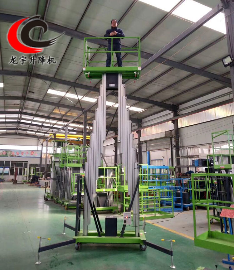 鋁合金液壓升降機(jī)根據(jù)升降高度和載重負(fù)荷不同而變化結(jié)構(gòu),分為單柱、雙柱、三柱、四柱。單柱和雙柱根據(jù)升降高度分為4、6、8、10、12、14米。鋁合金升降平臺(tái)主體結(jié)構(gòu)采用高強(qiáng)度鋁合金材料,控制升降方式為電動(dòng)和手動(dòng),上下控制,還可以根據(jù)客戶需求加裝遙控裝置。
