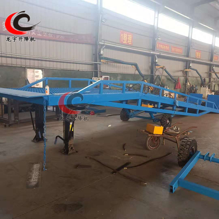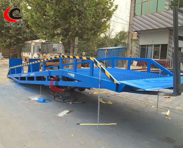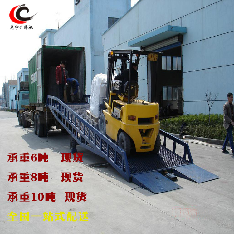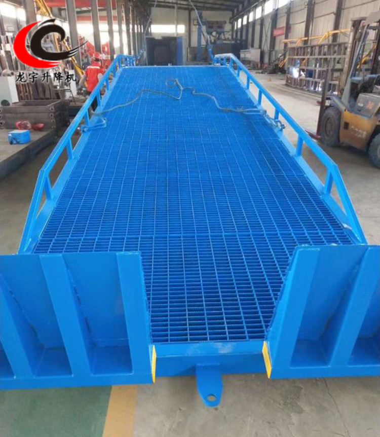 移動式液壓登車橋是與叉車配合使用的貨物裝卸專用輔助設(shè)備,叉車從地面通過登車橋斜坡緩慢駛?cè)肫囓噹麅?nèi)部進(jìn)行批量裝卸作業(yè)。龍宇移動登車橋采用人工液壓動力,不需接動力電源,只需單人操作,即可實(shí)現(xiàn)貨物的安全快速裝卸,方便快捷,減少大量勞動力,成倍提高裝卸作業(yè)效率,加快貨物流通速度,獲取經(jīng)濟(jì)效益。液壓登車橋是實(shí)現(xiàn)貨物快速裝卸的專用物流設(shè)備,具有高度調(diào)節(jié)功能,能在貨車與庫房的貨臺之間架起一座橋梁,方便叉車等裝卸搬運(yùn)車通過登車橋出入貨車進(jìn)行裝卸作業(yè),只需一人,即可安全快速完成裝卸作業(yè)。濟(jì)南龍宇機(jī)械是知名液壓升降設(shè)備生產(chǎn)型企業(yè),公司常年備有6~15T各噸位的登車橋現(xiàn)貨,可以隨時發(fā)貨。亦可以根據(jù)用戶要求合理設(shè)計尺寸,工期短,質(zhì)量高,服務(wù)好。完美的產(chǎn)品,全面的服務(wù)。選擇龍宇,選擇優(yōu)質(zhì)產(chǎn)品。