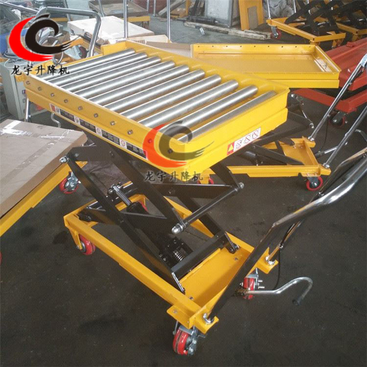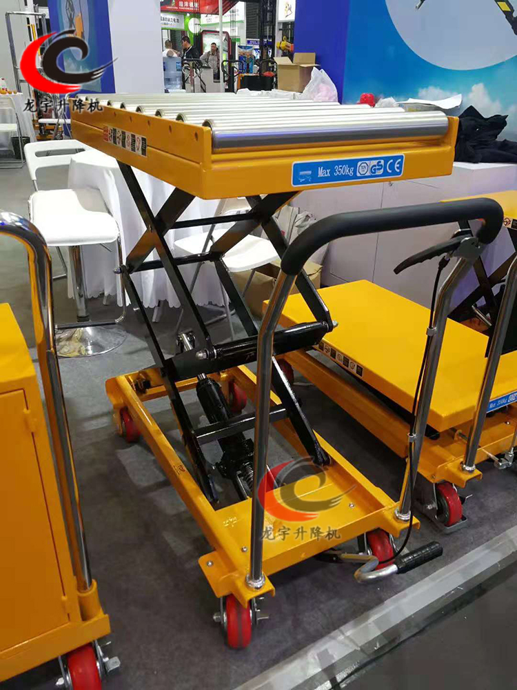 單、雙剪滾筒式液壓平臺車,采用高強度鋼材制作而成,平臺面之上裝有多根滾筒,便于貨物的移動,減輕人力的移搬力,通過滾珠臺面使工作輸送省時,省力,安全。內裝安全閥,全密封油缸,手動控制液壓系統(tǒng)升降,操作方便簡捷。配有尼龍導向輪向輪節(jié)省操作者的體力,并能保護載重輪與托盤載重輪。獨特液壓泵設計,起泵簡便為流水線裝載和卸載操作保持一個理想高度而設計;加上獨特人體工學設計,使操作者操作舒適。