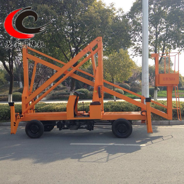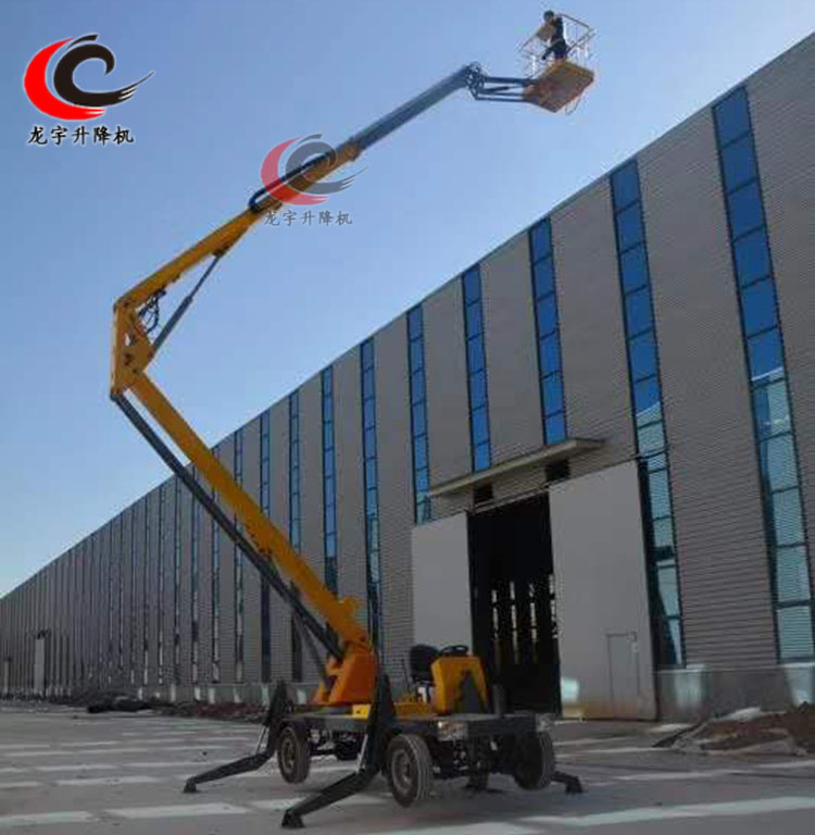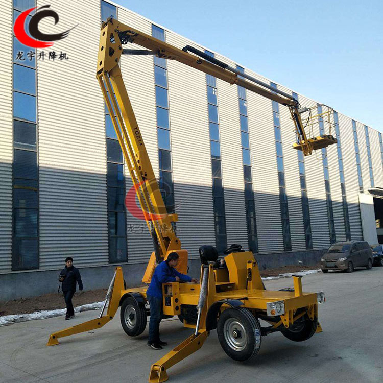 4.拖車(chē)折臂式升降機(jī):可以掛在汽車(chē)上,與汽車(chē)同步,適合野外高空作業(yè)。升降方式:(1)用380-220V電源 (2)用電源不方便,可以用電瓶驅(qū)動(dòng)升降。外型美觀,行走方便。