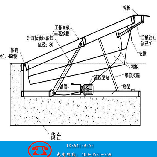 “固定登車橋”也稱作“貨臺裝車平臺”,多鑲嵌于貨臺上使用,在倉庫貨臺與貨柜之間形成過渡斜坡橋,高度自主調節(jié)。無貨臺的老式倉庫也可焊接鋼架代替貨臺,達到同樣的使用作業(yè)效果,很大程度上提高作業(yè)效率。固定登車橋示意圖: