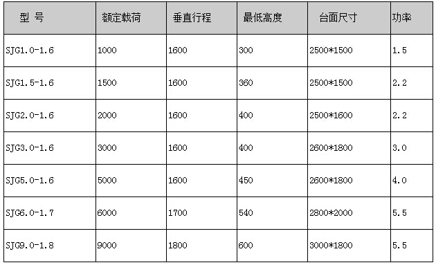 <升降平臺(tái)規(guī)格參數(shù)>
