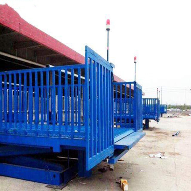 有剪刀式升降平臺、斜坡式升降平臺兩款,形式可設(shè)計(jì)固定式卸豬臺,設(shè)備落回與貨臺平齊,方便上下;也可根據(jù)需求設(shè)計(jì)成可移動式裝豬臺,滿足不同位置裝卸需求。