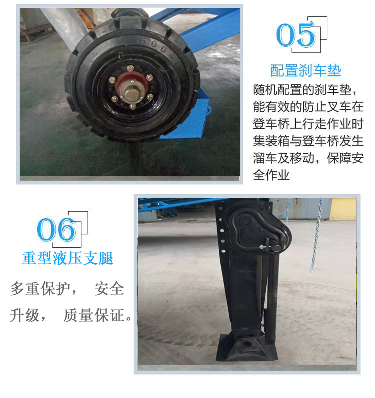 7、可調(diào)節(jié)長度的索鏈用于連接裝貨車輛,作業(yè)過程因慣性發(fā)生輕微移位時,也始終緊密貼合。