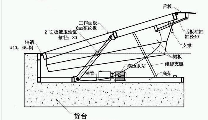 8、設(shè)有保障維護(hù)人員進(jìn)入登車橋內(nèi)部維護(hù)時(shí)安全的支撐桿。