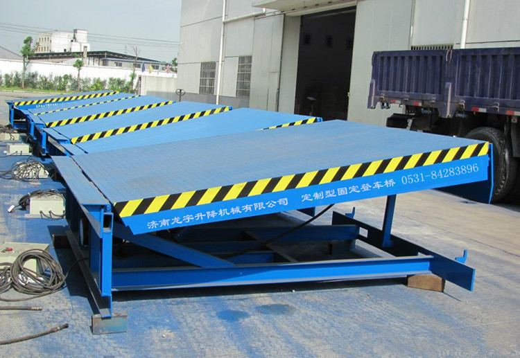 固定登車橋-貨臺裝車平臺是與倉儲月臺結(jié)合在一起的貨物裝卸輔助設(shè)備,主體材料采用高強(qiáng)度錳鋼矩管,可承重5-15噸貨物裝卸,大幅度提高工作效率,減小人工勞動(dòng)強(qiáng)度。臺面上方焊接優(yōu)質(zhì)花紋板,有效防滑,雨雪天氣也能正常作業(yè),不受自然環(huán)境干擾。使用簡單維護(hù)方便,只需輕輕點(diǎn)下按鈕,便可輕松完成精準(zhǔn)高度定位。固定登車橋保養(yǎng)只需按季節(jié)更換液壓油(夏季46#,冬季32#)--抗磨液壓油。DCQG固定登車橋系列產(chǎn)品設(shè)計(jì)完美,引進(jìn)意大利優(yōu)質(zhì)液壓控制技術(shù),質(zhì)量保障。