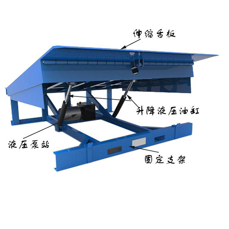 1、按住上升按鈕,登車橋緩緩升起至適當(dāng)?shù)母叨群螅瑢④囕v倒入舌板底部,松開此按扭,舌板會(huì)緩緩下落、搭在車輛后箱尾部時(shí),設(shè)備便停地此位置,即可進(jìn)行裝卸作業(yè)。